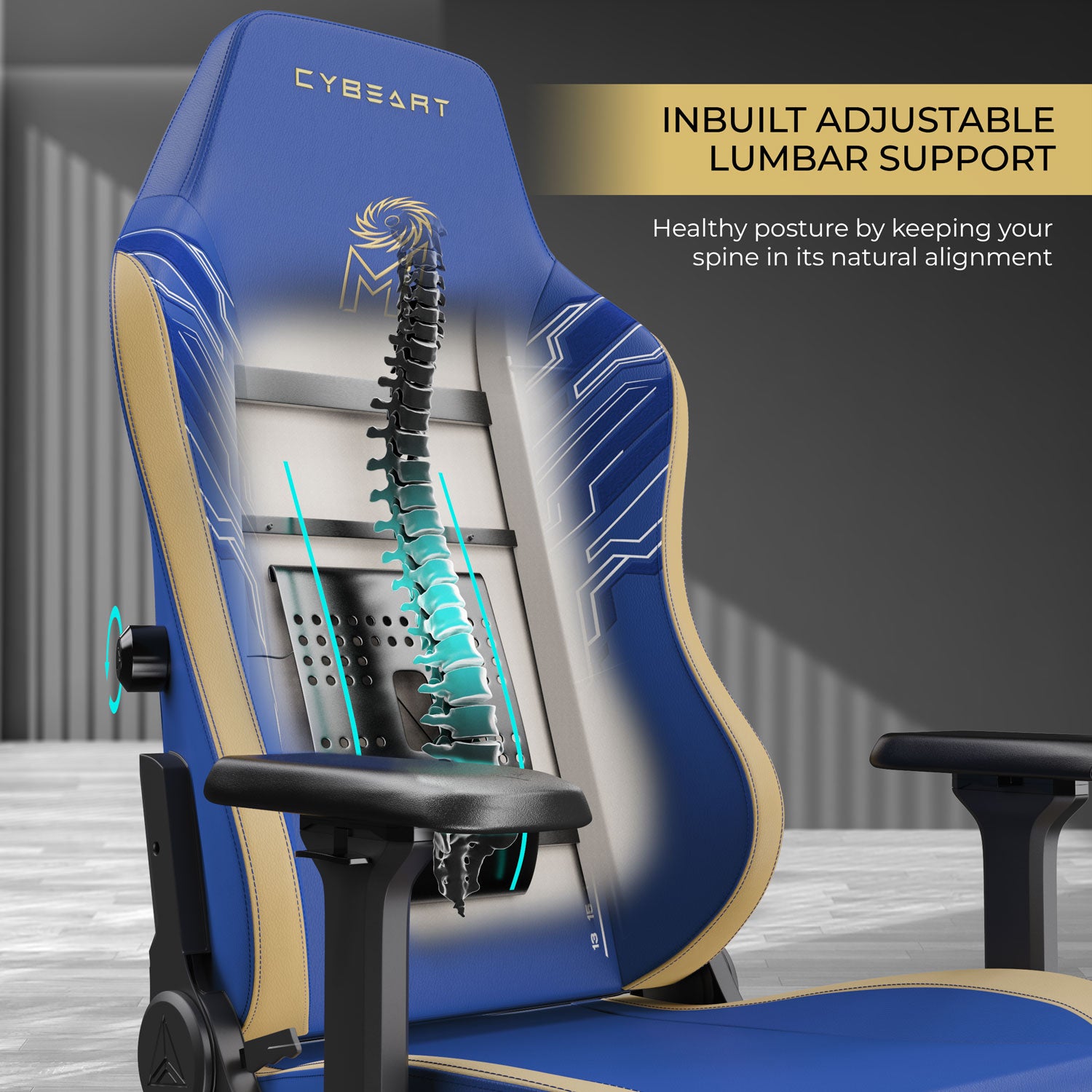 - Cybeart Mumbai Indians Maintains proper spinal alignment with the easy-to-adjust lumbar support knob.